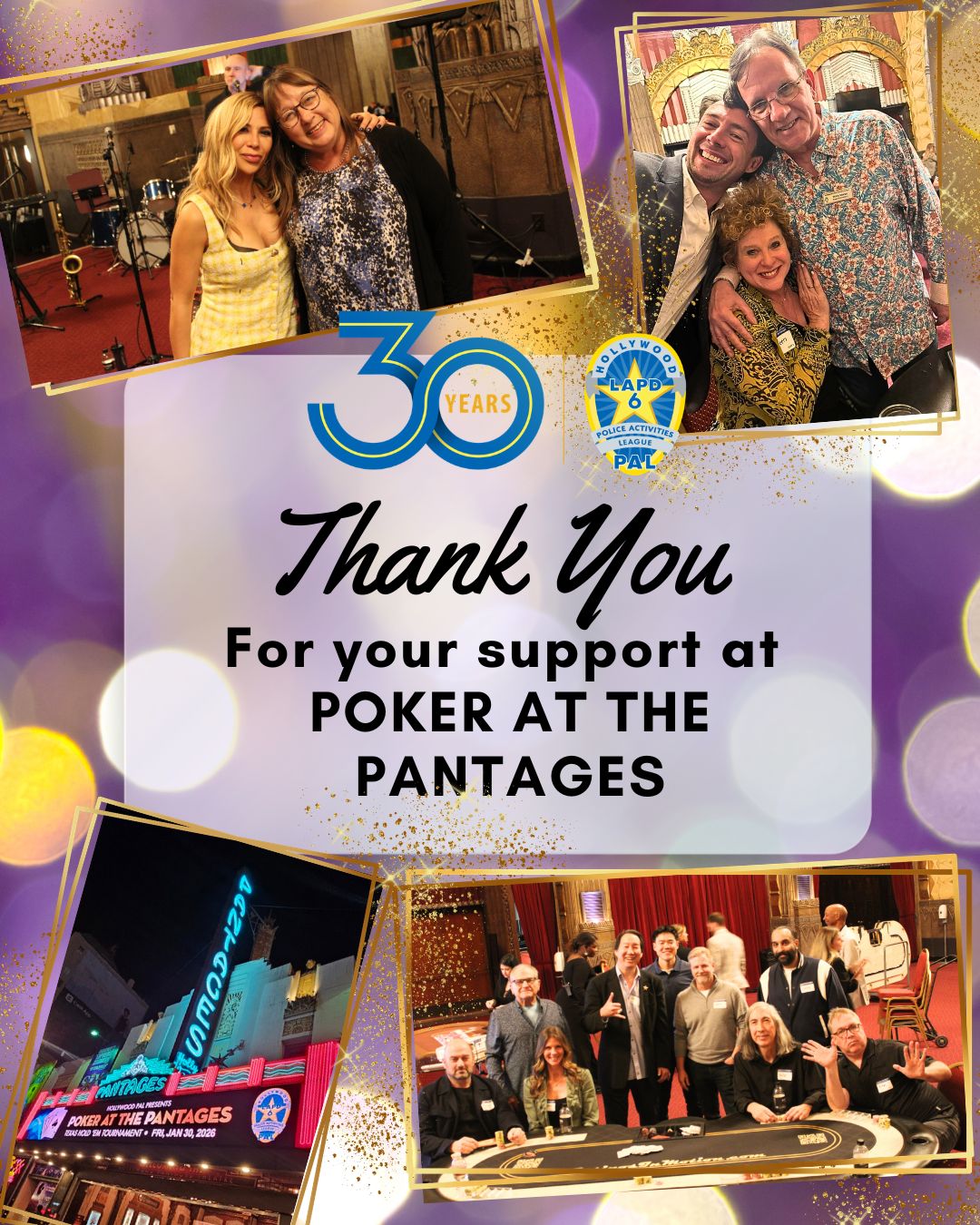 Poker at the Pantages 2026 was everything we hoped for and more. With over 130 players and supporters gathered inside the iconic Hollywood Pantages Theatre, the energy was electric and the purpose was clear: raising critical funds to support Hollywood PAL youth programs during our 30th year of impact.